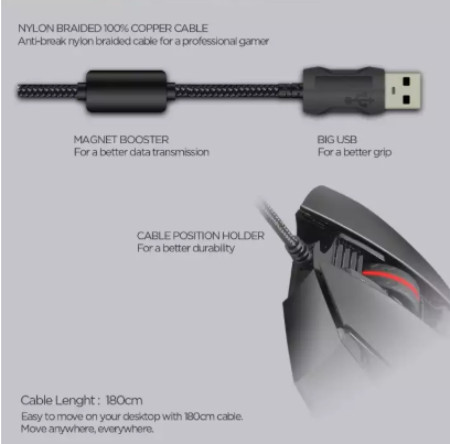 • 1.8 meters full copper USB network braided wire, with magnetic ring, anti-interference step in place