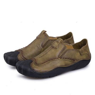 Fashion Men Genuine Leather Hand Stitching Slip On Soft Outdoor Casual Flats Loafers Shoes