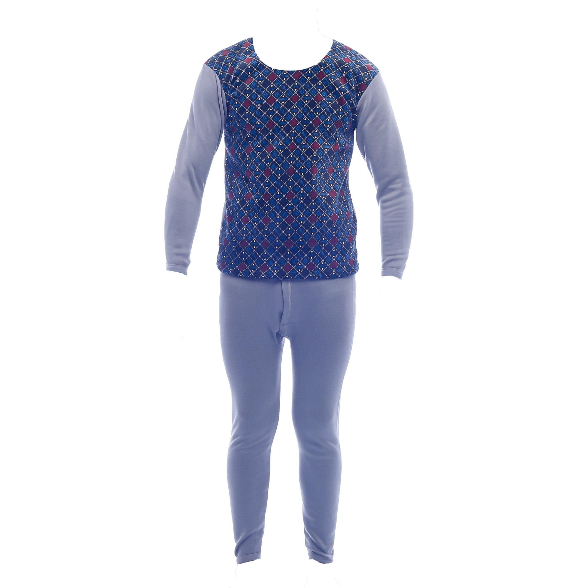 Gray/ Blue Pattern on Front Innerwear Winter Care Fur Inside Thermal Set For Men