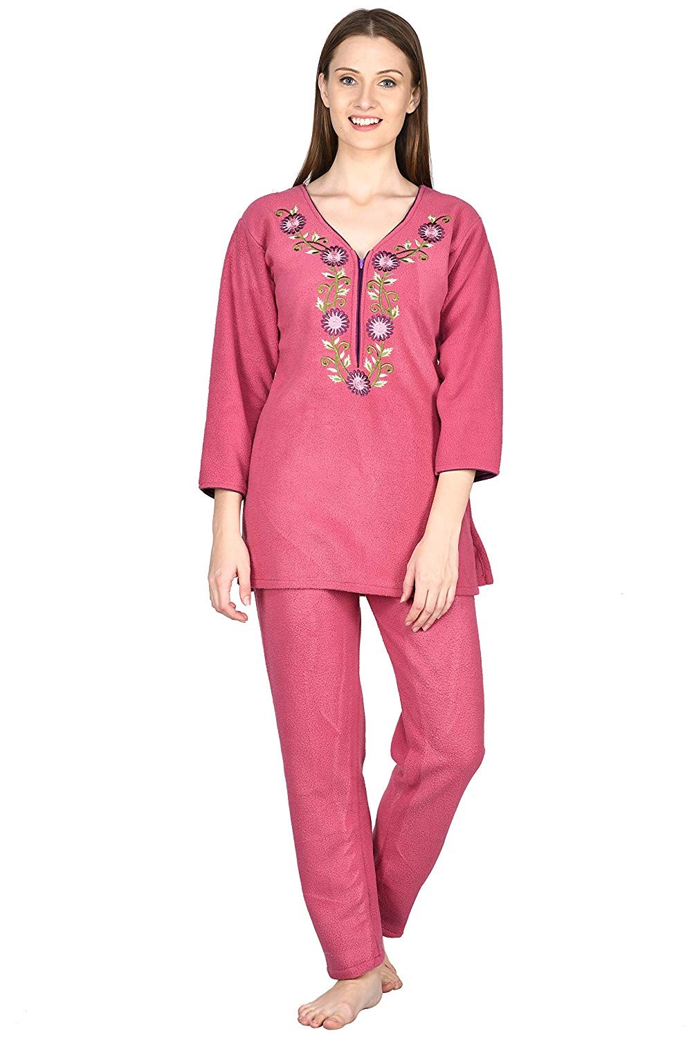 • Distinctive designed neck Embroidery with zip for ease of wear makes this night suit more practical