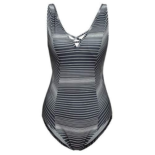 Reviews of Women Sleeveless Stripe Print Swimsuit Ladies Bikini Beach One Piece Swimwear